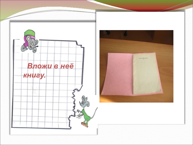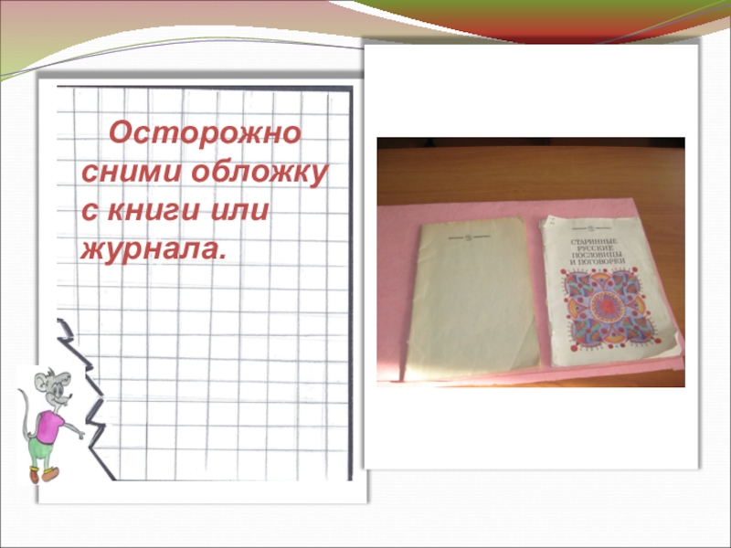 Из обложки, которую сняли, вырезаем иллюстрацию и приклеиваем на картонную обложку.