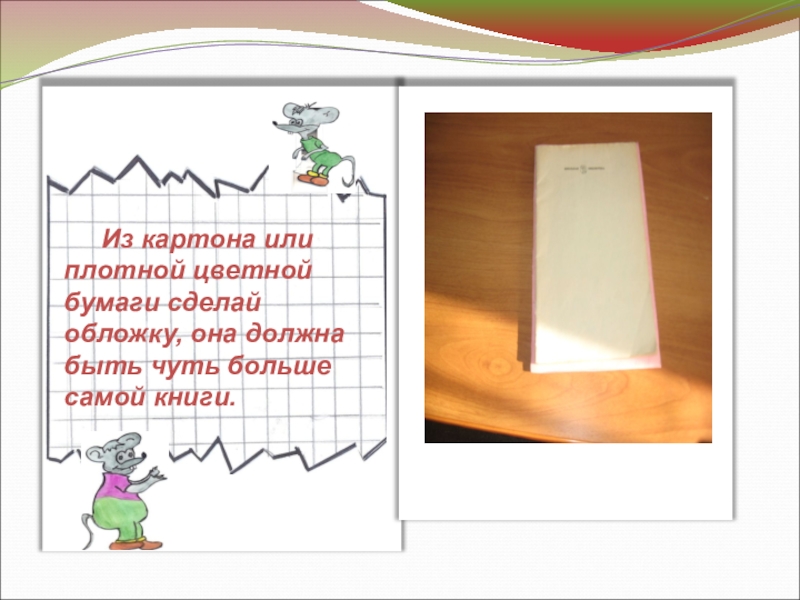 Из картона или плотной цветной бумаги сделай обложку, она должна быть чуть больше самой