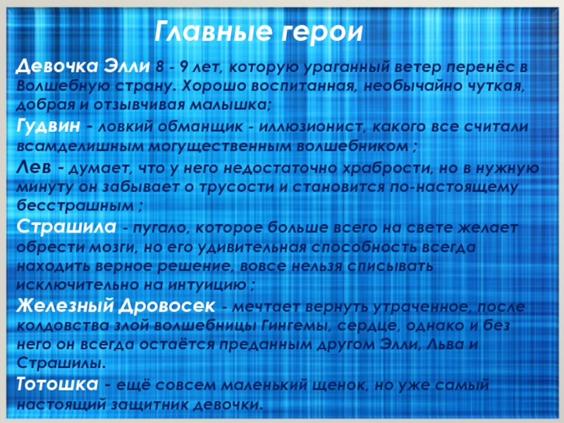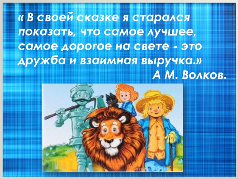 Элли, Тотошка, Страшила,Дровосек и Лев