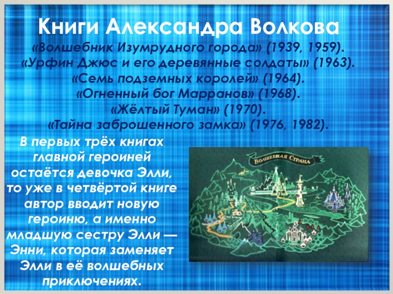 В первых трёх книгах главной героиней остаётся девочка Элли, то уже в четвёртой книге автор вводит новую героиню, а именно младшую сестру Элли — Энни, которая заменяет Элли в её волшебных приключениях.