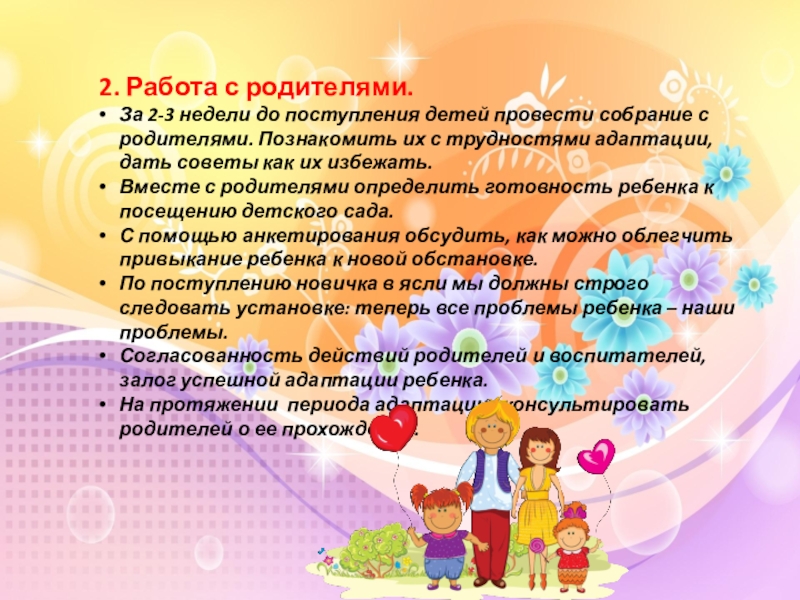 Слайд 8 2. Работа с родителями.