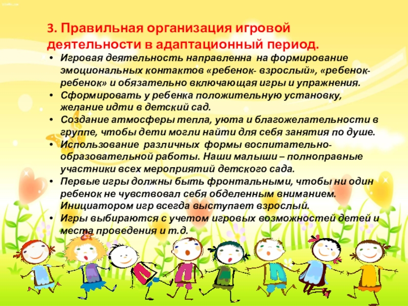 Слайд 93. Правильная организация игровой деятельности в адаптационный период.