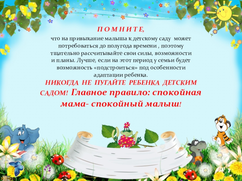 НИКОГДА НЕ ПУГАЙТЕ РЕБЕНКА ДЕТСКИМ САДОМ! Главное правило: спокойная мама- спокойный малыш!