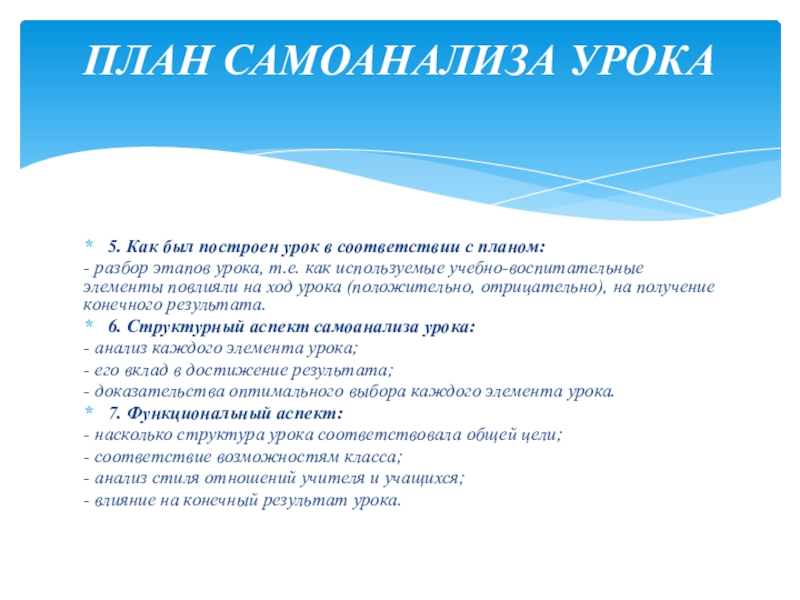 ПЛАН САМОАНАЛИЗА УРОКА