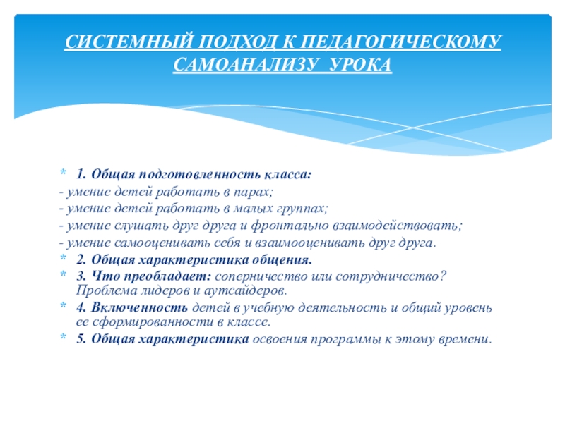 СИСТЕМНЫЙ ПОДХОД К ПЕДАГОГИЧЕСКОМУ САМОАНАЛИЗУ УРОКА