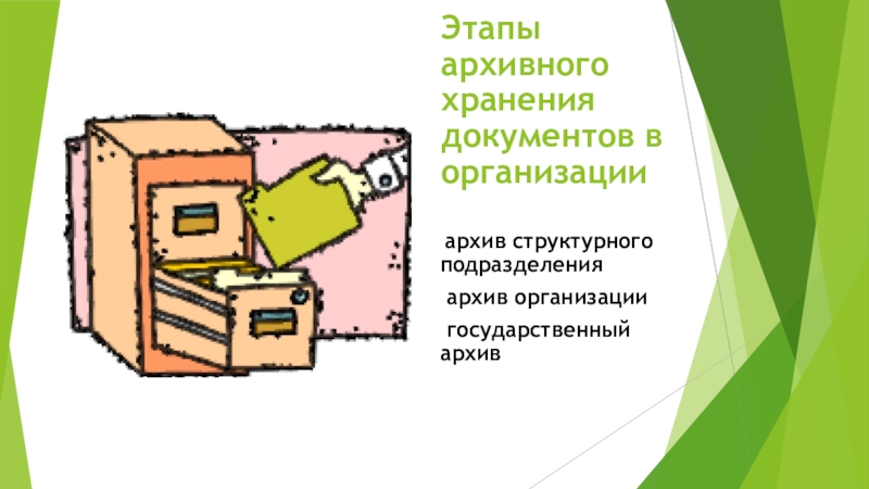 Слайд 7Этапы архивного хранения документов в организации