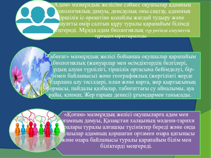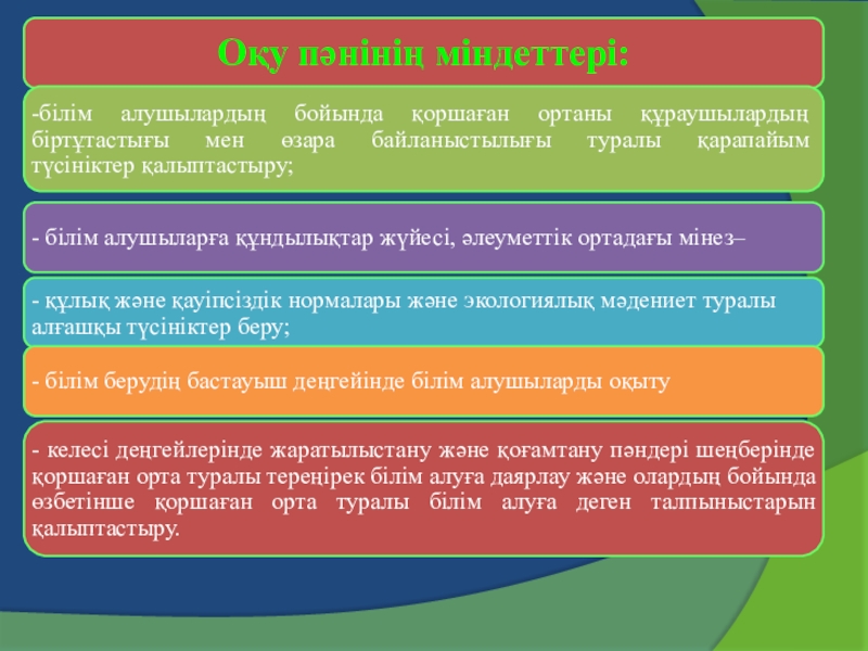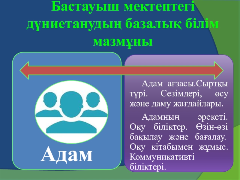 Слайд 10Бастауыш мектептегі дүниетанудың базалық білім мазмұны