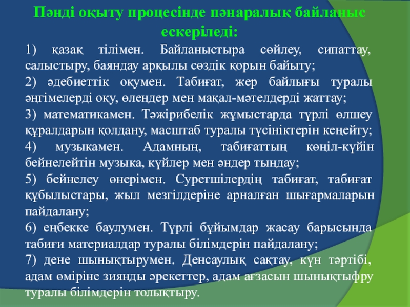 Слайд 6Пәнді оқыту процесінде пәнаралық байланыс ескеріледі: