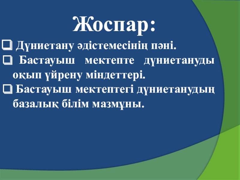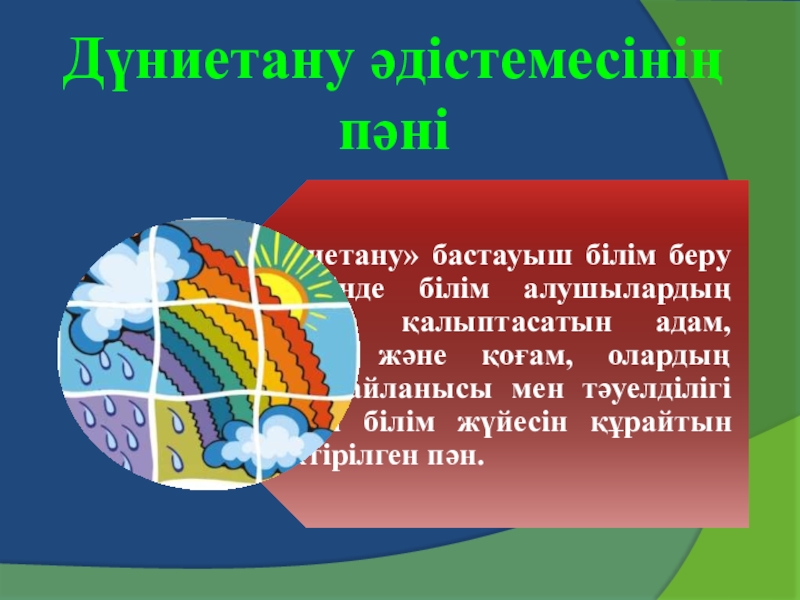 Презентация, доклад по теме: Бастауыш мектепте дүниетануды оқыту