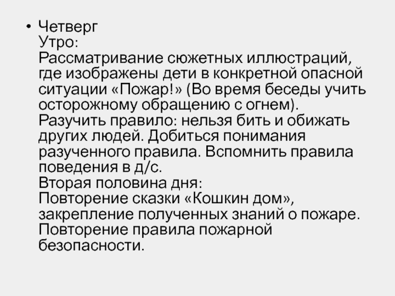 Разучить правило: нельзя бить и обижать других людей. Добиться понимания разученного правила. Вспомнить правила поведения в д/с.