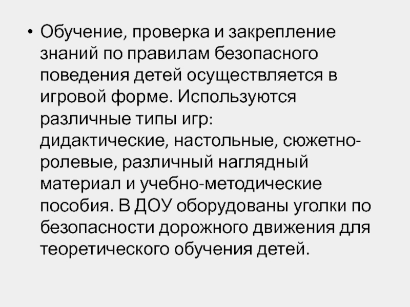 Слайд 4Обучение, проверка и закрепление знаний по правилам безопасного поведения детей осуществляется