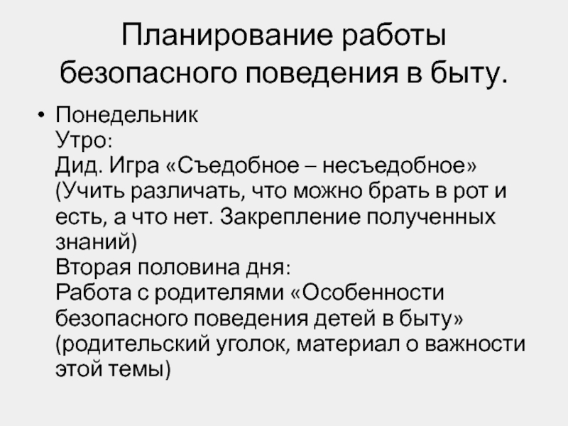 различать, что можно брать в рот и есть, а что нет. Закрепление полученных знаний)