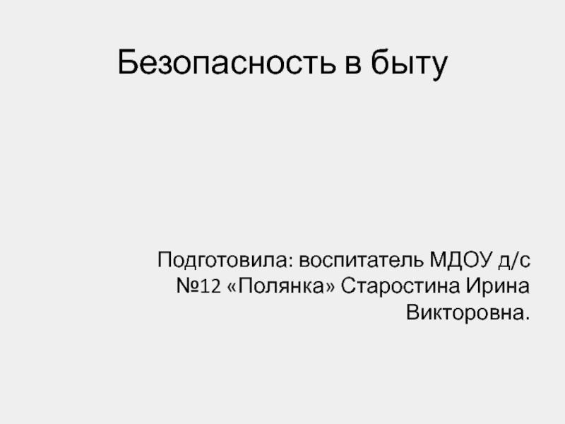 Подготовила: воспитатель МДОУ д/с №12 «Полянка» Старостина Ирина Викторовна.