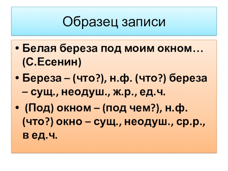 (Под) окном – (под чем?), н.ф. (что?) окно – сущ., неодуш., ср.р., в ед.ч.
