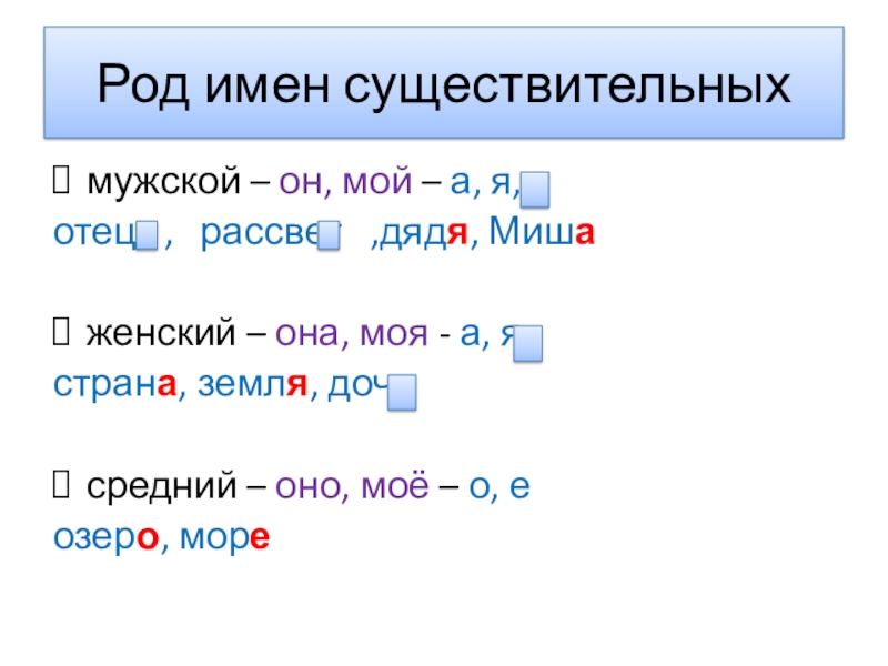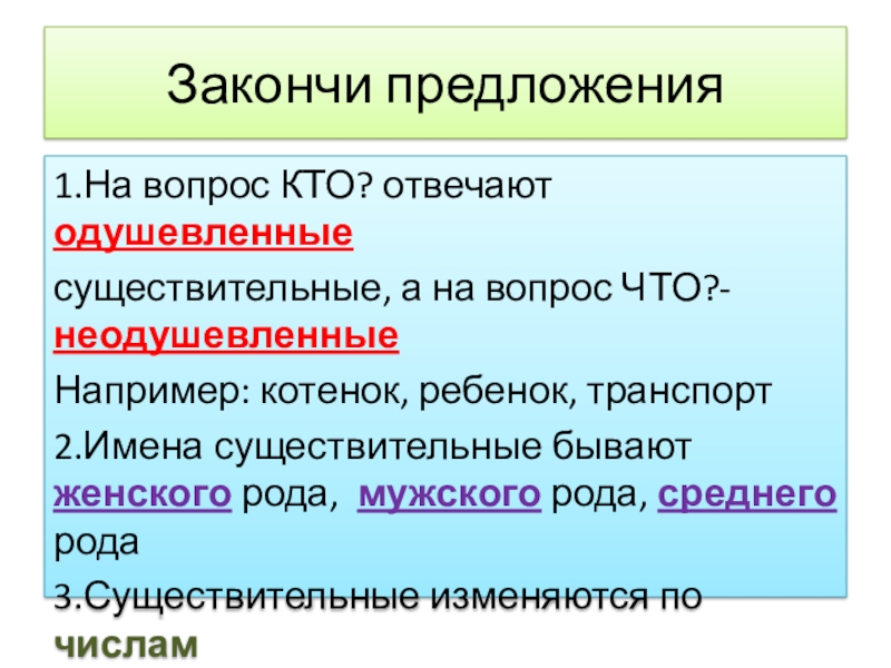 2.Имена существительные бывают женского рода, мужского рода, среднего рода