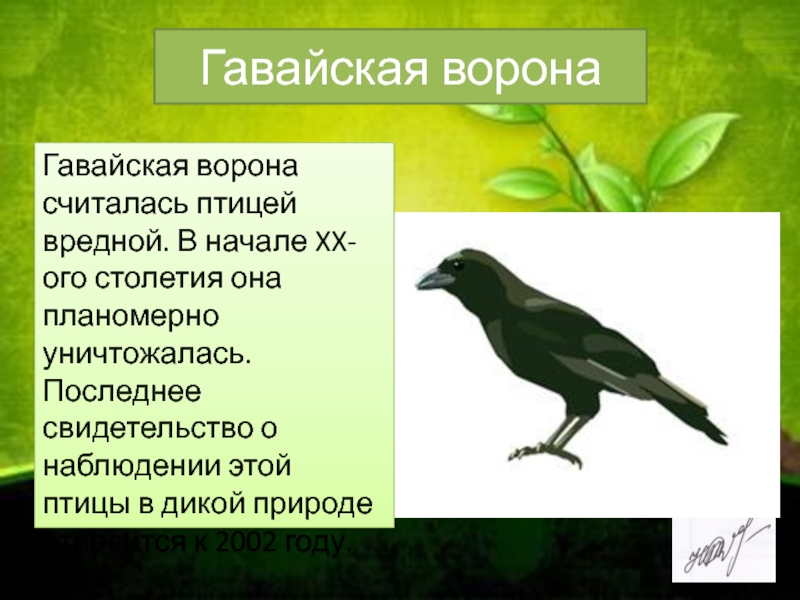 Гавайская ворона считалась птицей вредной. В начале XX-ого столетия она