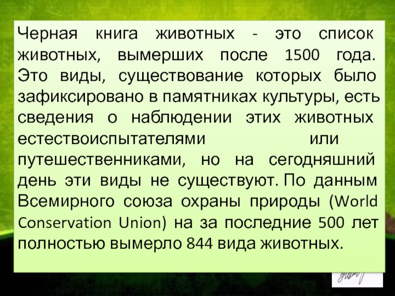 Слайд 2Черная книга животных - это список животных, вымерших после 1500 года.
