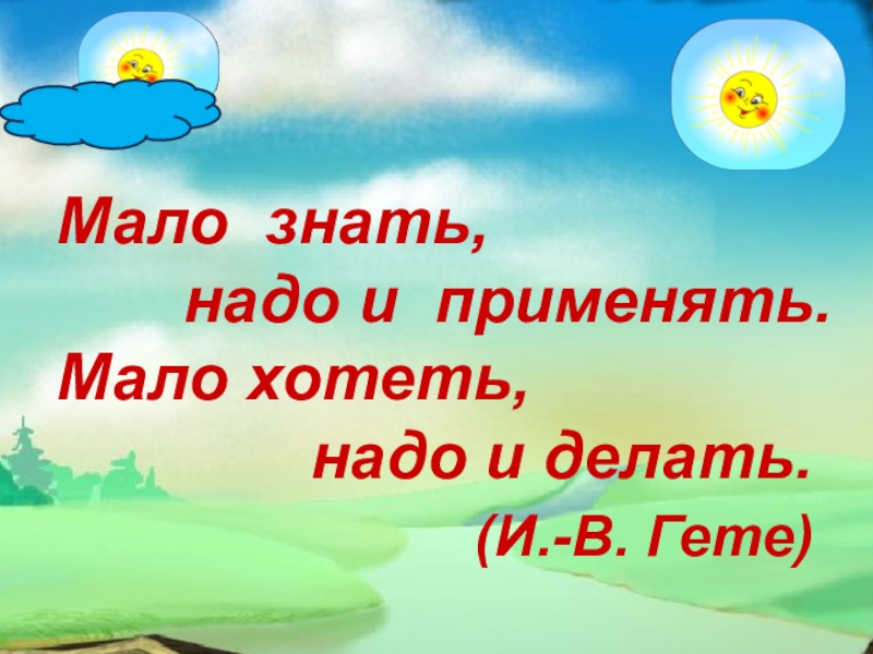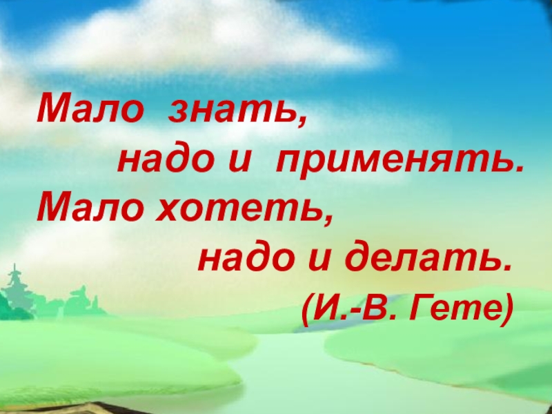 Слайд 3Мало знать, надо и применять. Мало хотеть,