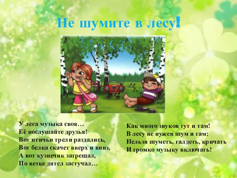 В лесу не нужен шум и гам: