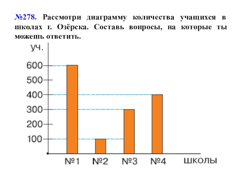 Слайд 9№278. Рассмотри диаграмму количества учащихся в школах г. Озёрска. Составь вопросы,