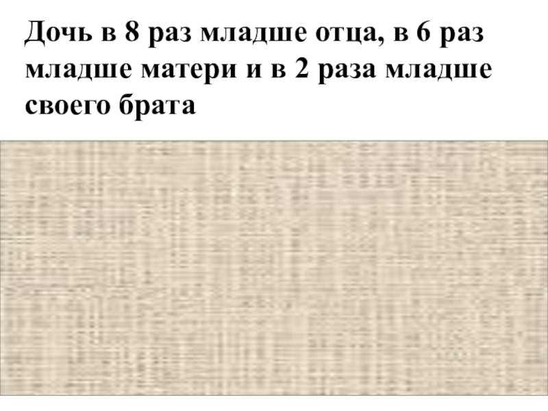 Слайд 8Дочь в 8 раз младше отца, в 6 раз младше матери