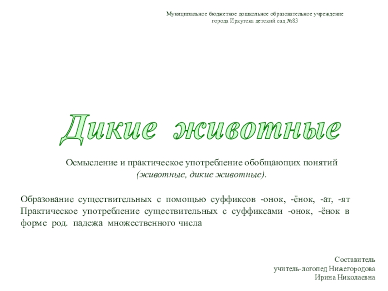 Осмысление и практическое употребление обобщающих понятий (животные, дикие животные).