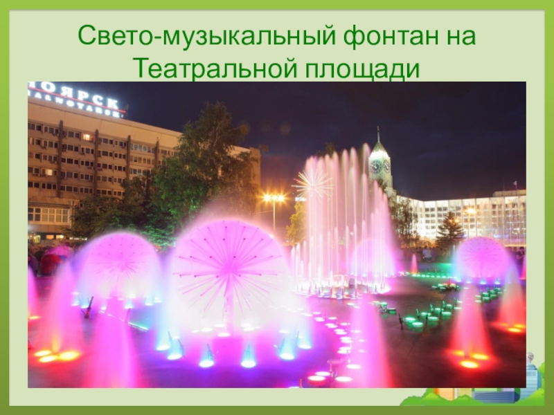 Слайд 12Свето-музыкальный фонтан на Театральной площади