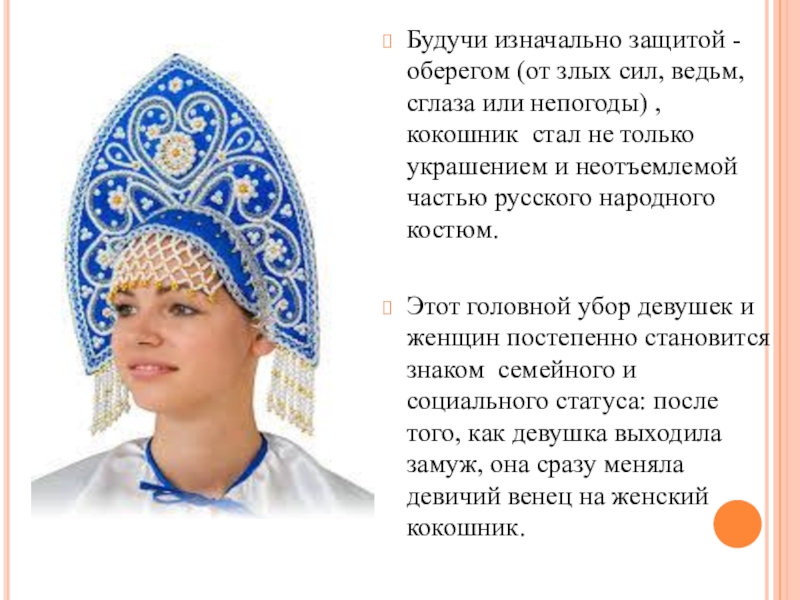 непогоды) , кокошник стал не только украшением и неотъемлемой частью русского народного костюм.