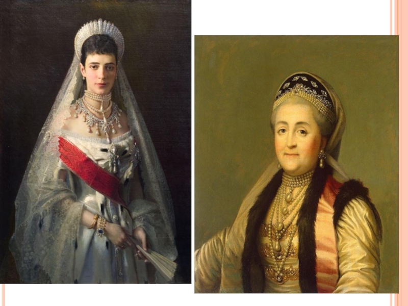Слайд 19Кокошники в сочетании с придворным декольтированным платьем оставались в гардеробе императрицы,