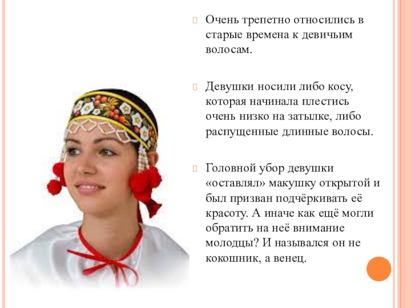 Слайд 11Очень трепетно относились в старые времена к девичьим волосам.
