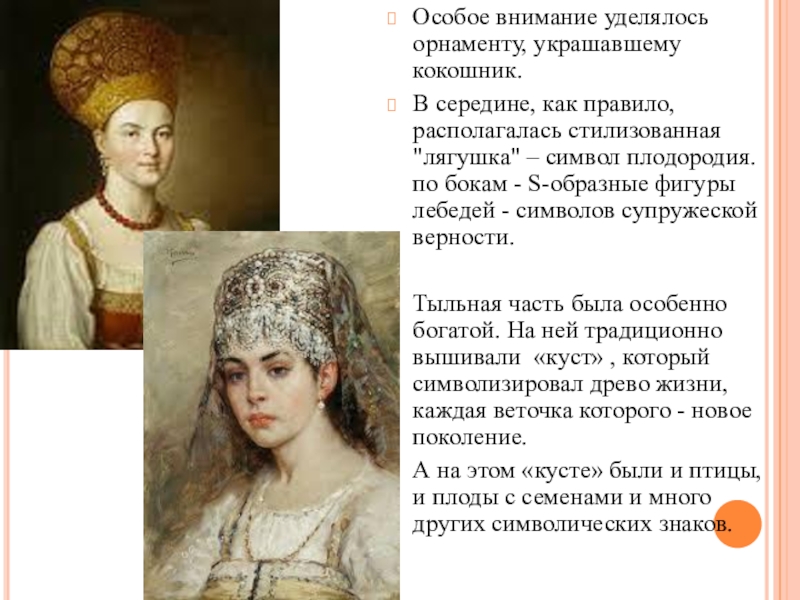 Слайд 10Особое внимание уделялось орнаменту, украшавшему кокошник.