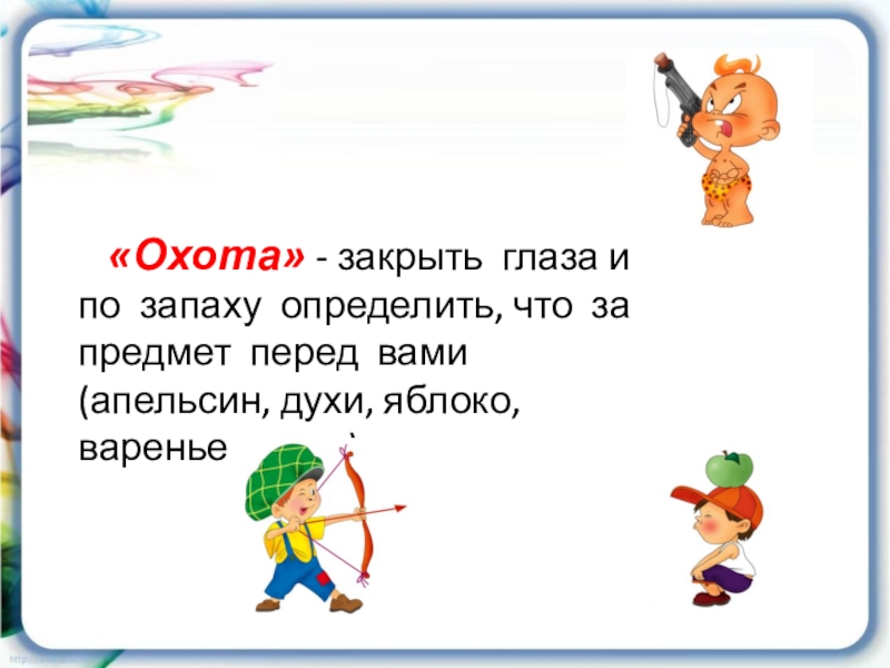 Слайд 12 «Охота» - закрыть глаза и по запаху определить, что