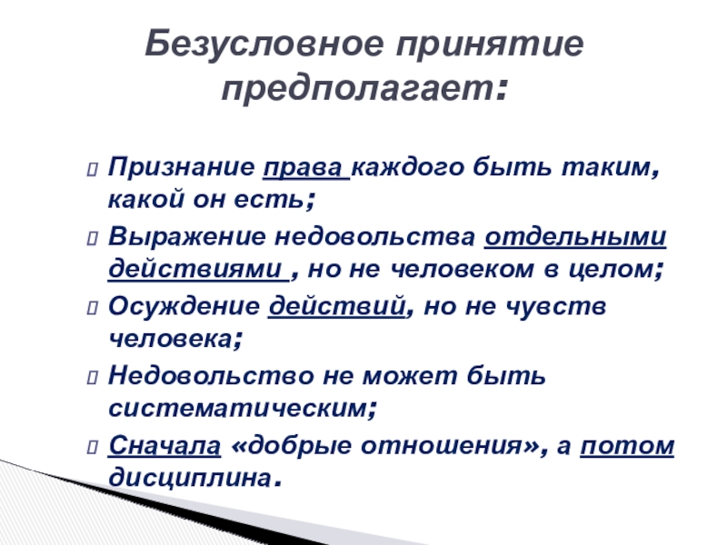 Безусловное принятие предполагает: