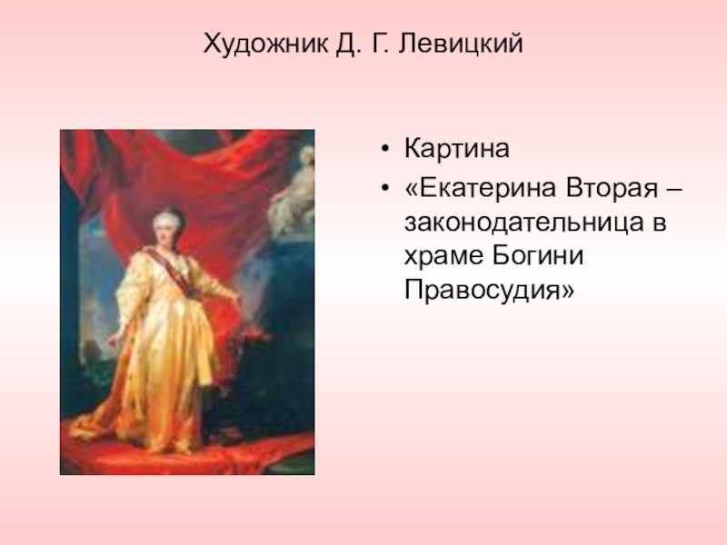 Художник Д. Г. ЛевицкийКартина «Екатерина Вторая – законодательница в храме Богини Правосудия»