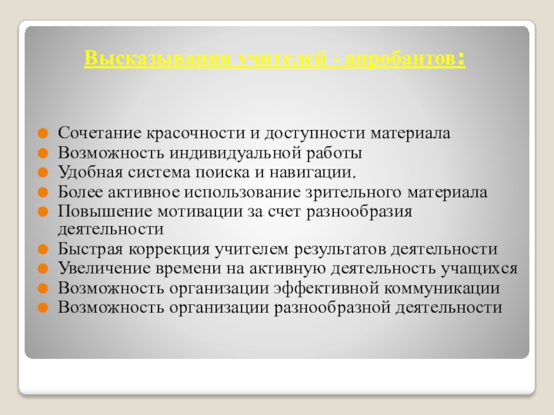 Высказывания учителей - апробантов: