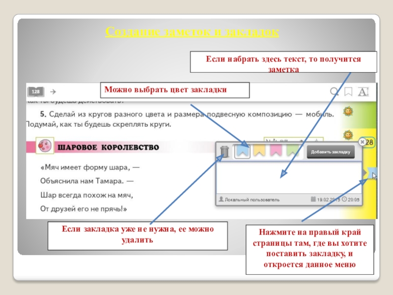Нажмите на правый край страницы там, где вы хотите поставить закладку, и откроется данное меню