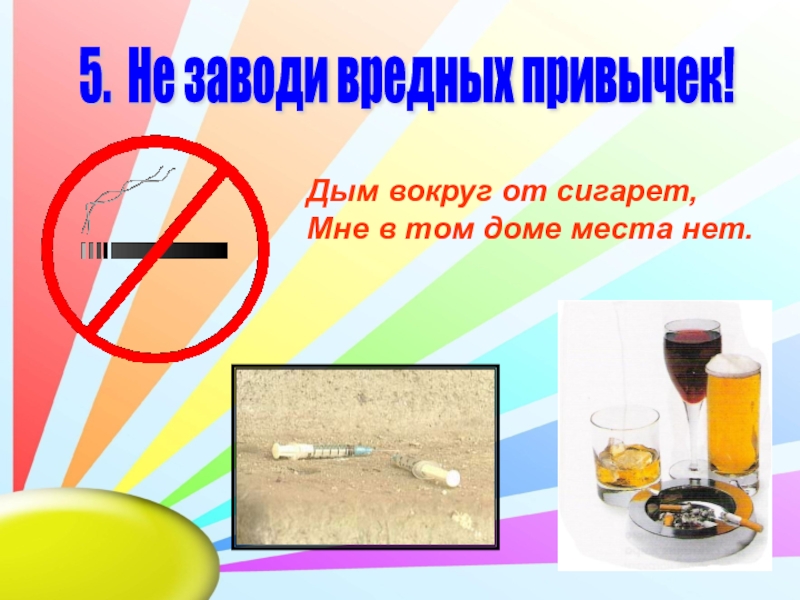 5. Не заводи вредных привычек! Дым вокруг от сигарет,Мне в том доме места нет.