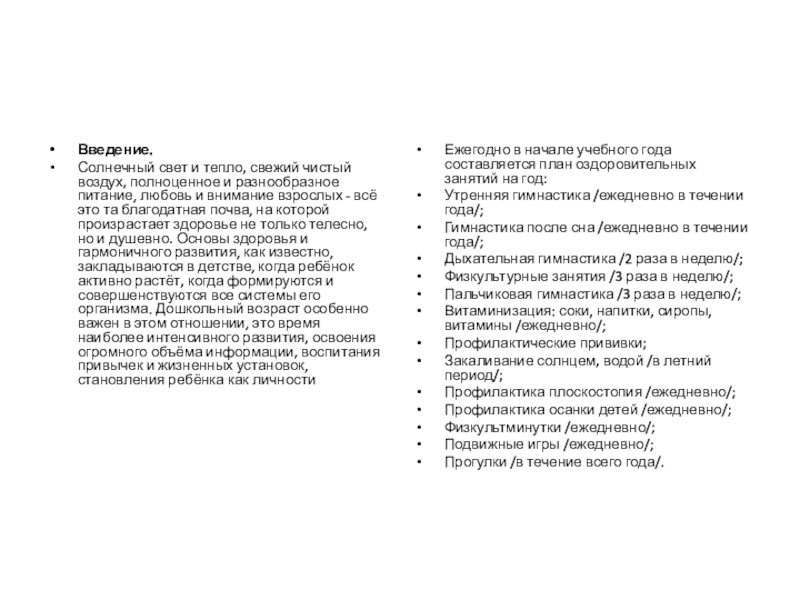 Ежегодно в начале учебного года составляется план оздоровительных занятий на год: