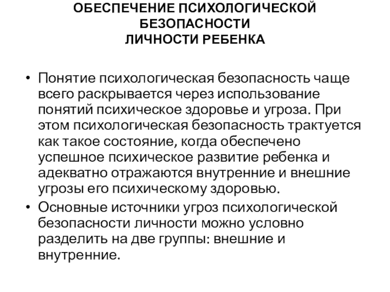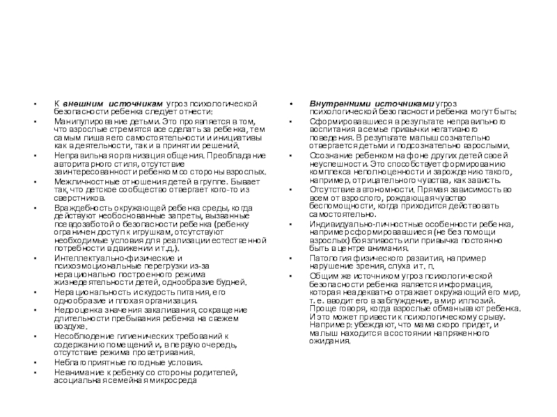 Внутренними источниками угроз психологической безопасности ребенка могут быть: