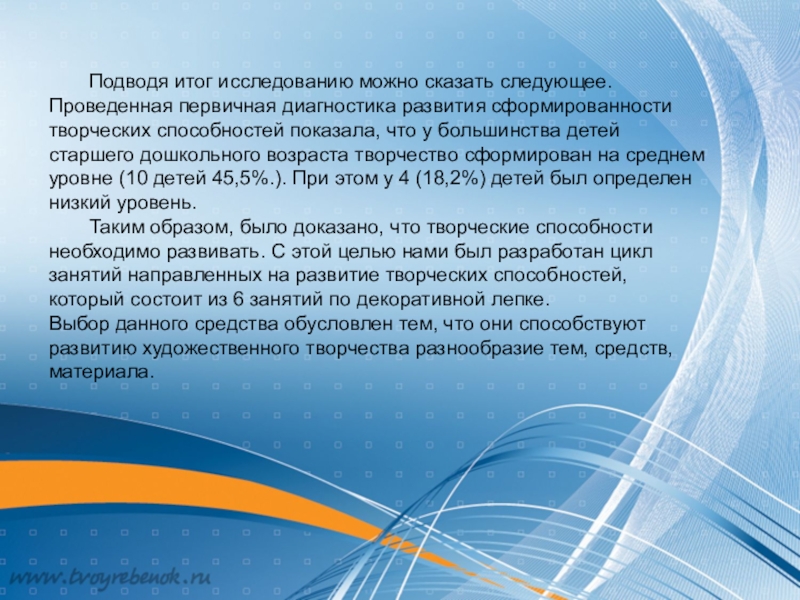 Слайд 31 Подводя итог проведенному исследованию с уверенностью можно сказать, что развитие творческих