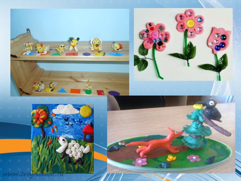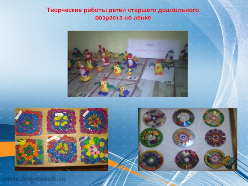 Слайд 27Творческие работы детей старшего дошкольного возраста по лепке