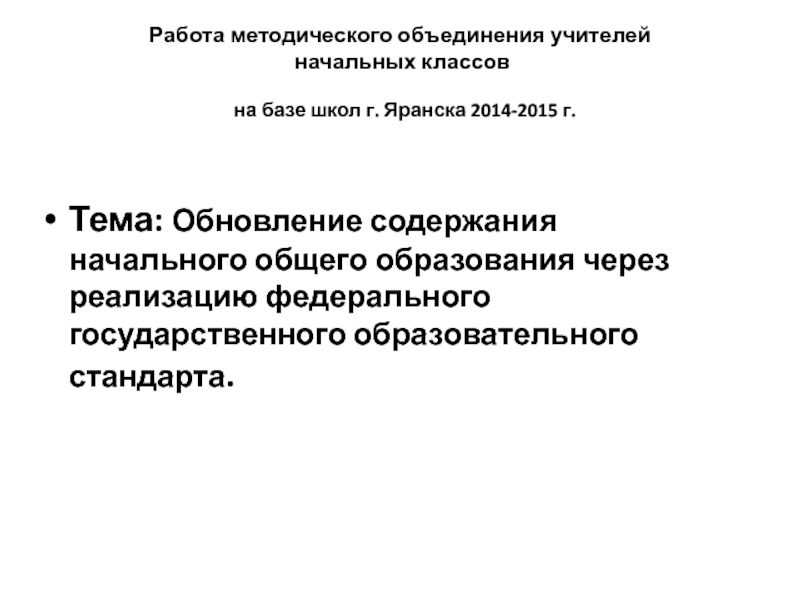 Тема: Обновление содержания начального общего образования через реализацию федерального государственного образовательного стандарта.