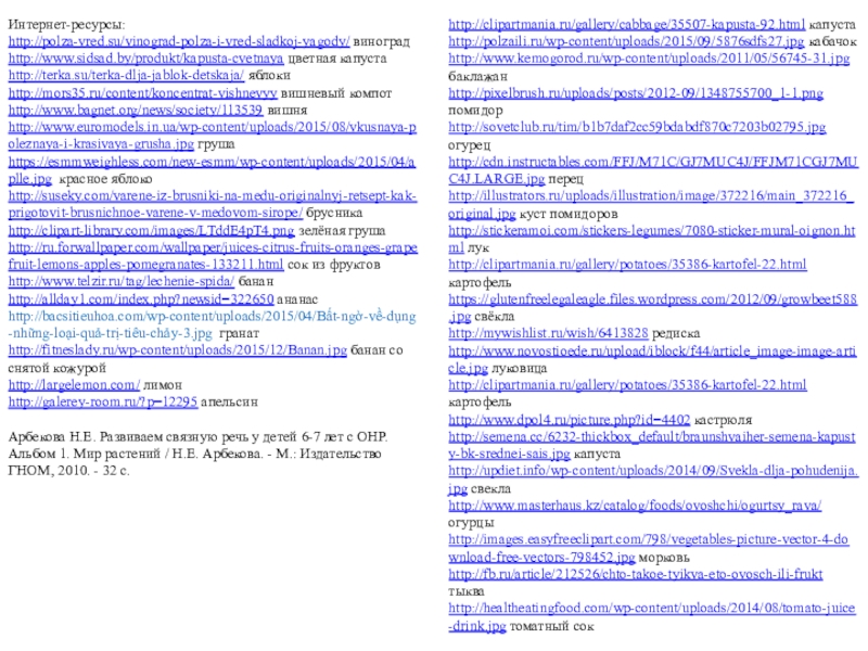 Арбекова Н.Е. Развиваем связную речь у детей 6-7 лет с ОНР. Альбом 1. Мир растений / Н.Е. Арбекова. - М.: Издательство ГНОМ, 2010. - 32 с.