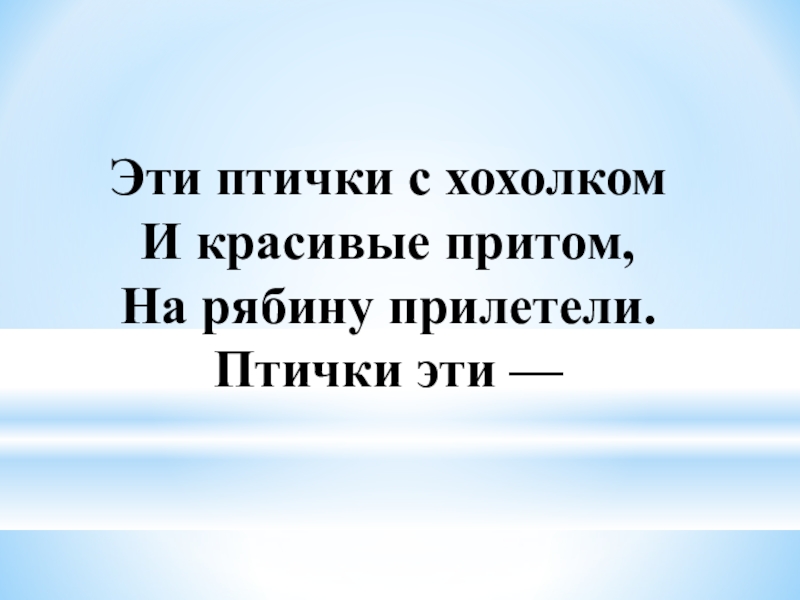 Слайд 13Эти птички с хохолком И красивые притом, На рябину прилетели. Птички эти —