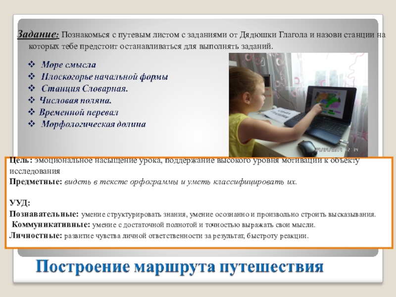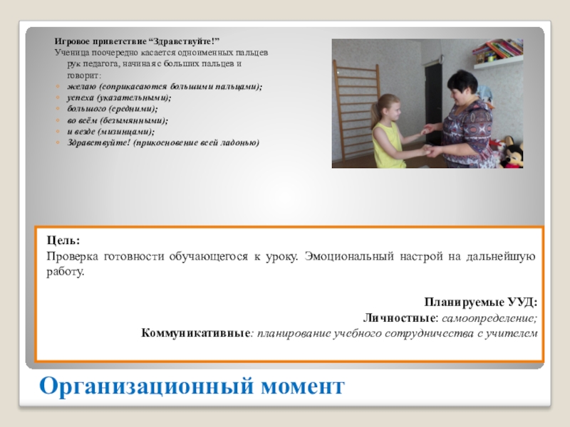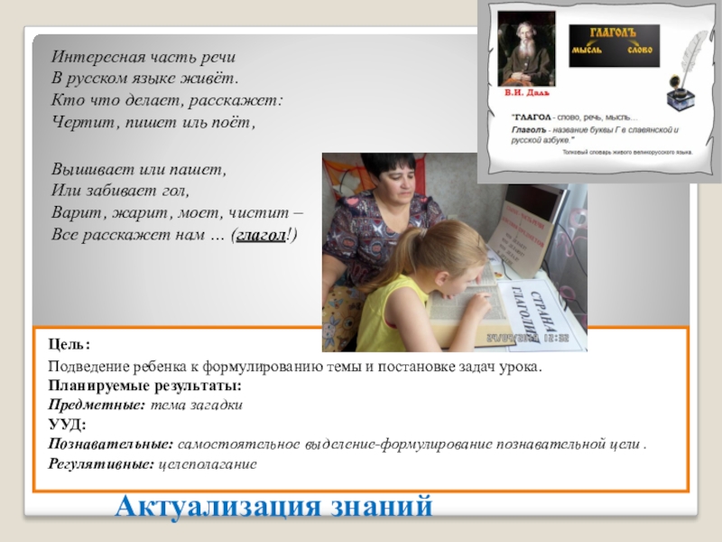 Подведение ребенка к формулированию темы и постановке задач урока.