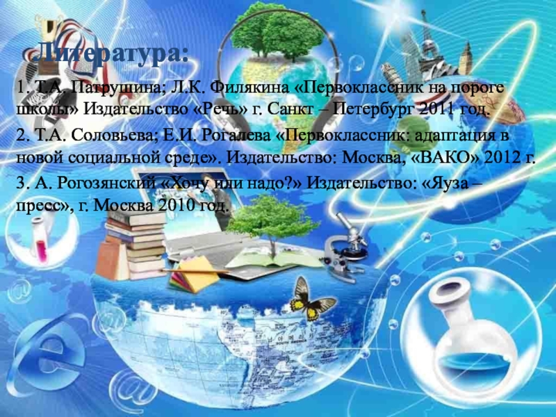 1. Т.А. Патрушина; Л.К. Филякина «Первоклассник на пороге школы» Издательство «Речь»