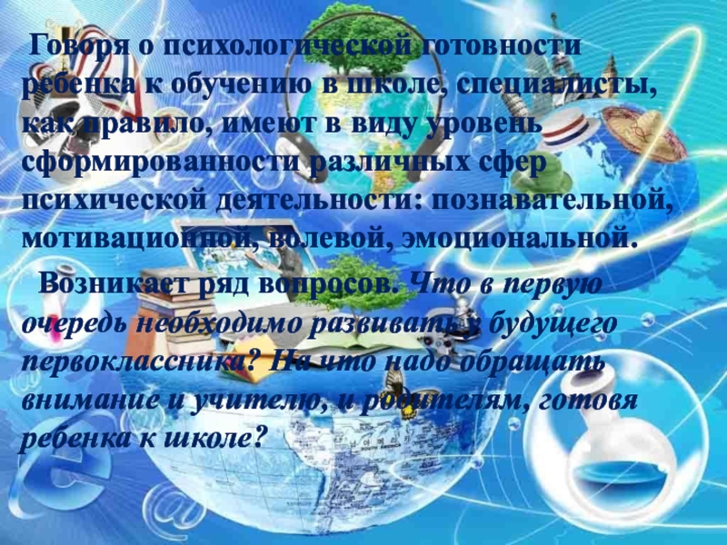 Слайд 25 Говоря о психологической готовности ребенка к обучению в школе, специалисты,