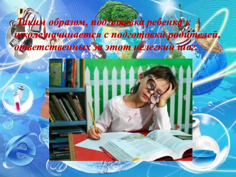 Слайд 31 Таким образом, подготовка ребенка к школе начинается с подготовки родителей,
