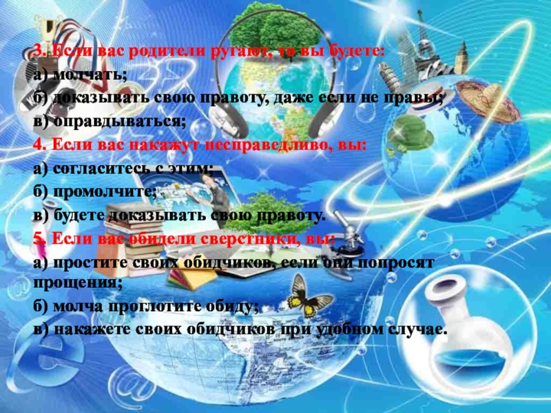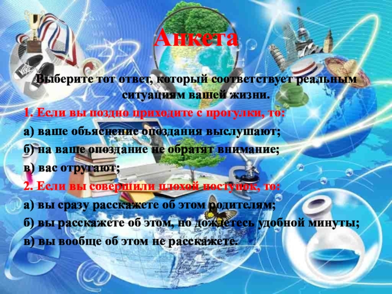 Выберите тот ответ, который соответствует реальным ситуациям вашей жизни.
