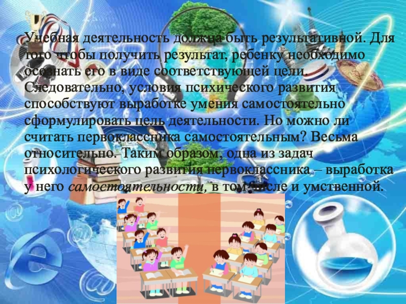 Слайд 8Учебная деятельность должна быть результативной. Для того чтобы получить результат, ребенку